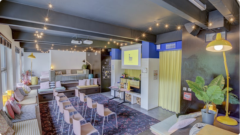 Situé au cœur du Mama, profitez de ce lieu tout équipé, cosy, inspirant et décalé, ouvert sur le bar, pour vos ateliers, conférences, sessions de team building et autres réunions professionnelles.
